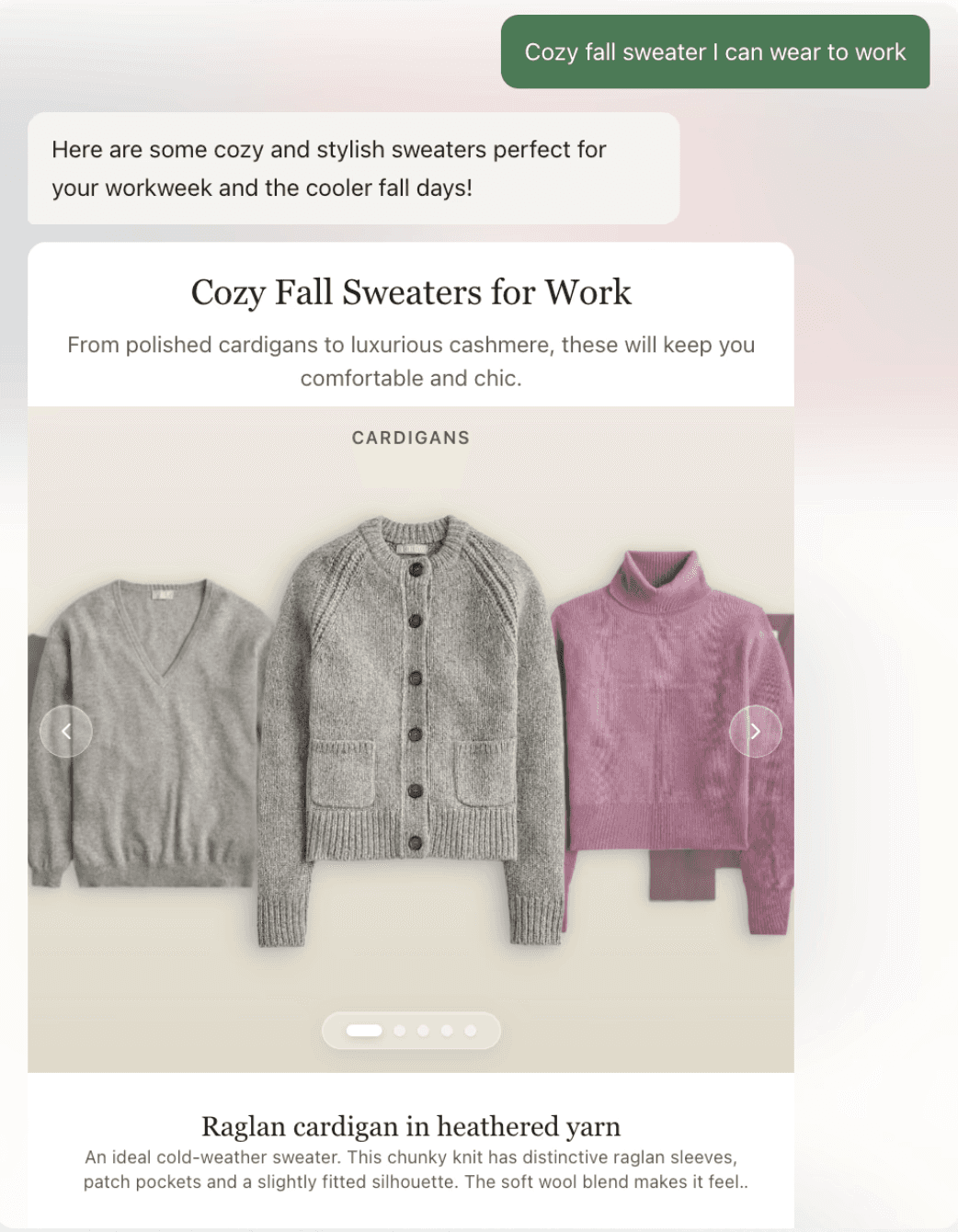 Shoppers describe what they want and Closera finds the right products instantly. Conversational search across your entire catalog replaces filters, facets, and rigid navigation.
